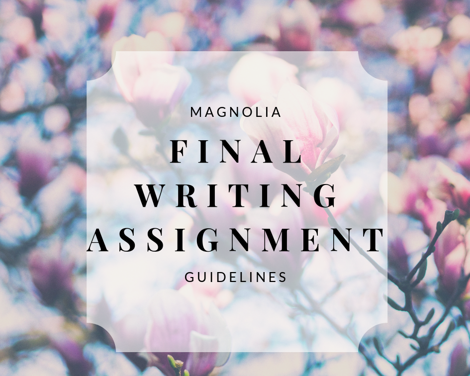 I handed out the final assignment. You don’t have to begin now, but it gives you an idea.